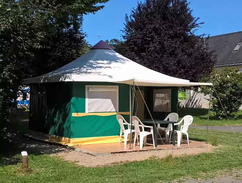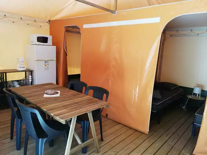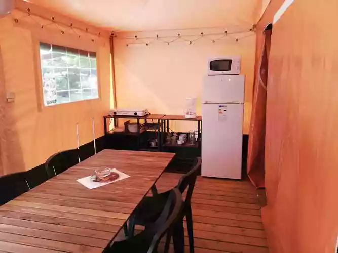 Tente Kiwi de 23m² dont 7m² de terrasse semi-couverte pour 4/5 personnes - sans sanitaire.