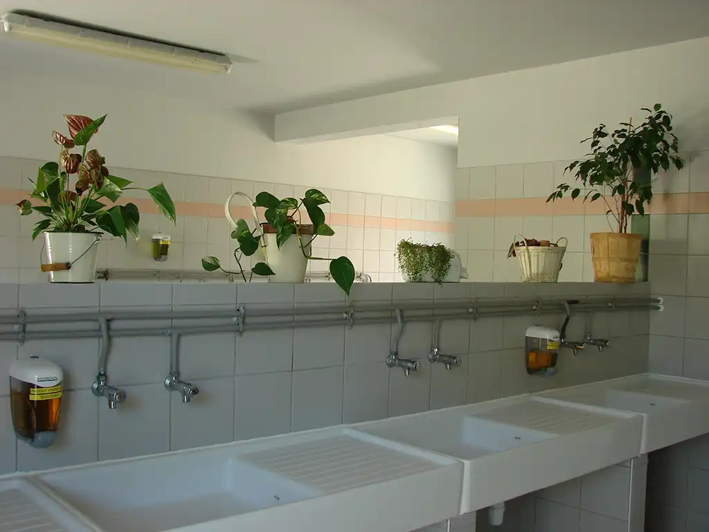 Vous avez accès au bloc sanitaire, à l'espace vaisselle et laverie du camping.